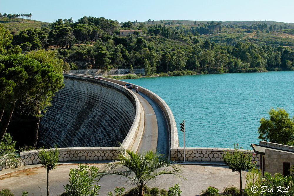 The dam is built at an altitude of 223 meters elevation and the road to take you back to Athens climbs a bit more, to 300+ meters altitude and from there you can have some beautiful panoramic views of the Marathon dam and lake.