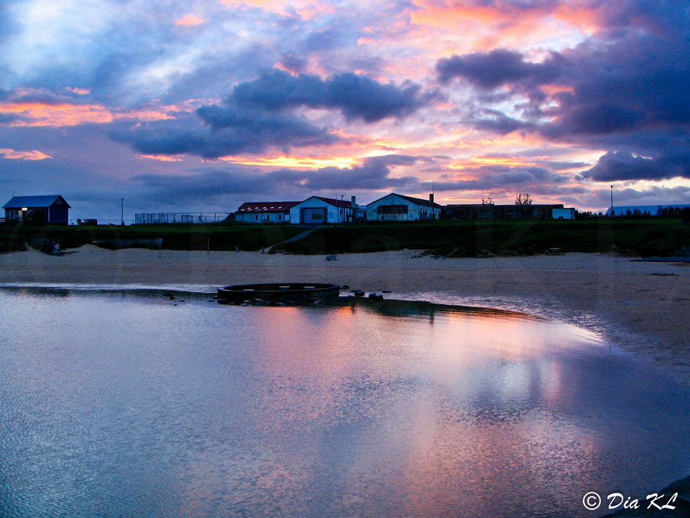 Next stop was at a beach on the south edge of the Reykjavik domestic airport and close to Perlan, Nautholsvik geothermal beach. We drove there just a bit before 2am and witnessed beautiful clouds and colors when the sun was preparing to come out again, still daylight though. Just because its geothermal it doesn’t mean the water is really warm, average temperatures were between 3°- 5°C in the winter and 12°- 15°C in the summer (in 2006). So I couldn’t believe it when I saw a completely naked guy bathing there at that time, while I was freezing! Nowadays warm excess water is heating the lagoon so the average temperature of the water during Summer has gone up to 15°-19°C.
